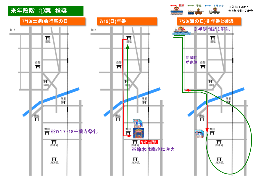 問屋町や千葉みなと等、長年の祭礼負担金問題を回避する山車の手曳きへの参加協力によって連携を促進